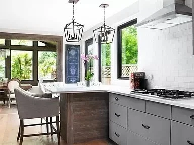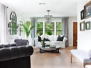 Making lemonade from lemons! This was an opportunity to take an older house and only incorporate cosmetic changes, which included paint, lighting, art work, and furnishings.