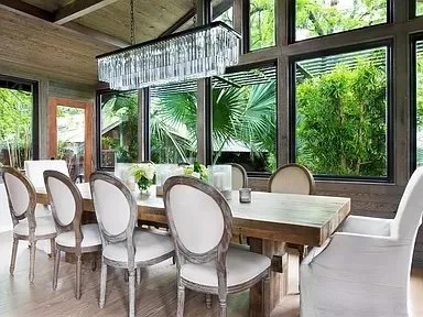The roof was removed from this 1500 sq ft bungalow and a complete renovation that included a two-story addition ended up with spectacular views of the city and 2500 sq ft of living space. Another part of this story was the conversion of the back porch into a stunning dining room.